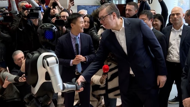 Atë ditë, ai u përshëndet edhe me Luka-n, një robot humanoid kinez, i cili u prezantua nga kompanitë Minth Group dhe AGIBOT Innovation në Qendrën Kulturore Kineze në Beograd.